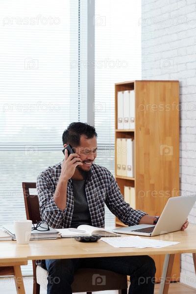 Бизнесмен в платовой рубашке разговаривает по телефону
