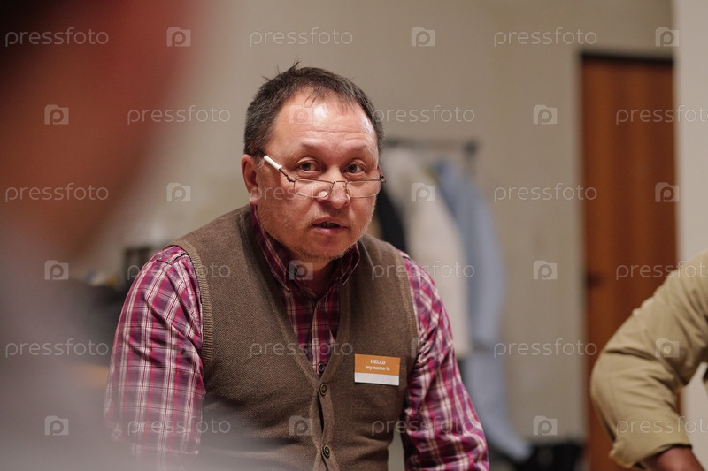 Зрелый мужской пациент группы психической поддержки, сидящий среди товарищей по группе и описывающий свою проблему