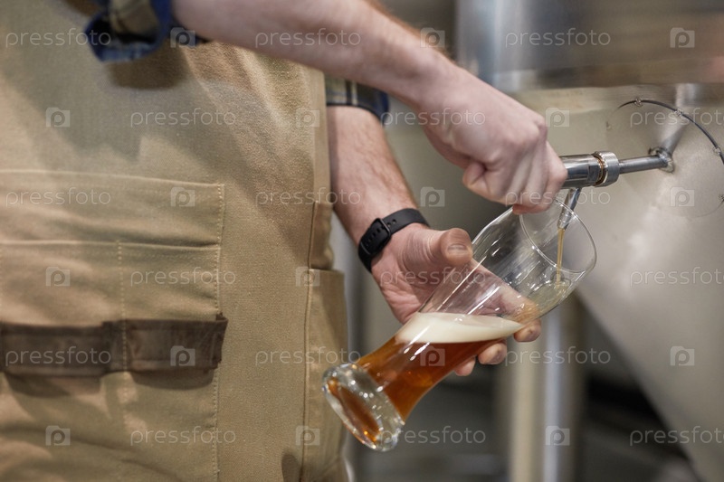 Пивоваренный мастер наливает пиво вблизи