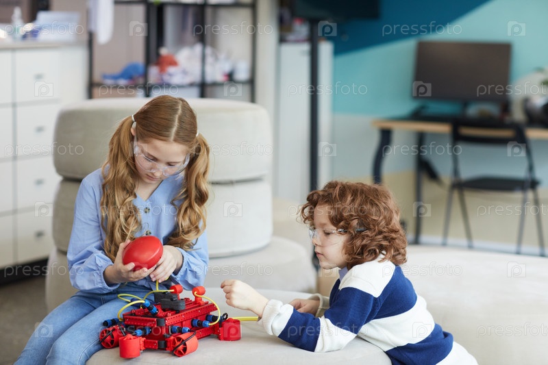 Дети играют с роботами в помещении