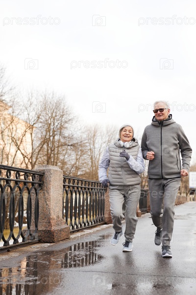 Старшая пара бегает зимой