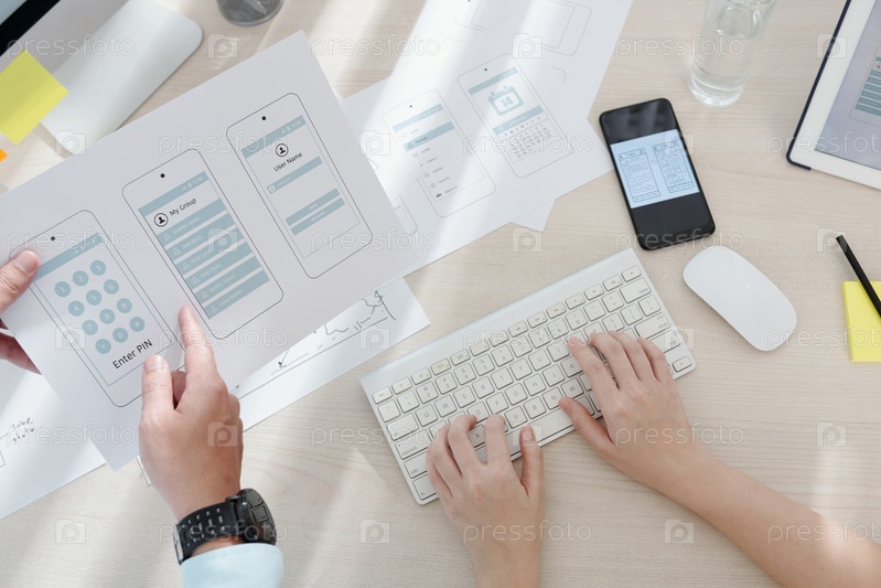 Дизайнеры обсуждают интерфейс мобильного приложения