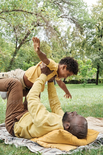 Отец играет с сыном в парке