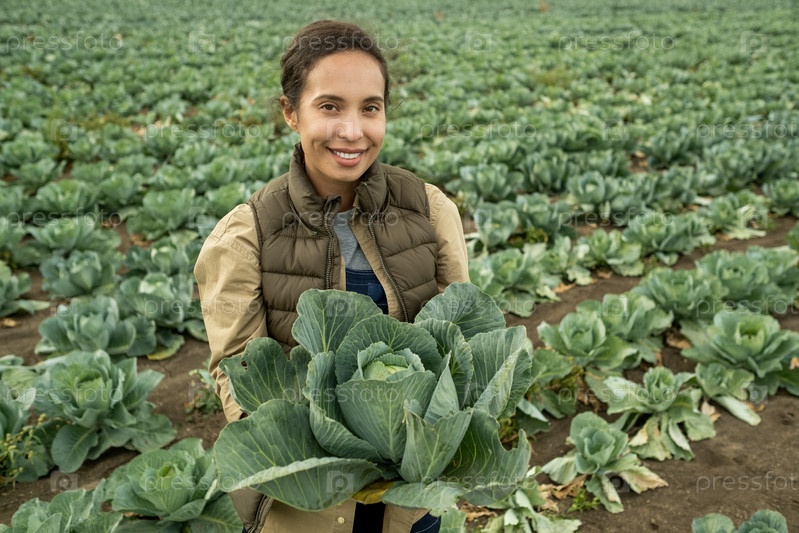 Красивая садоводка с большой капустой