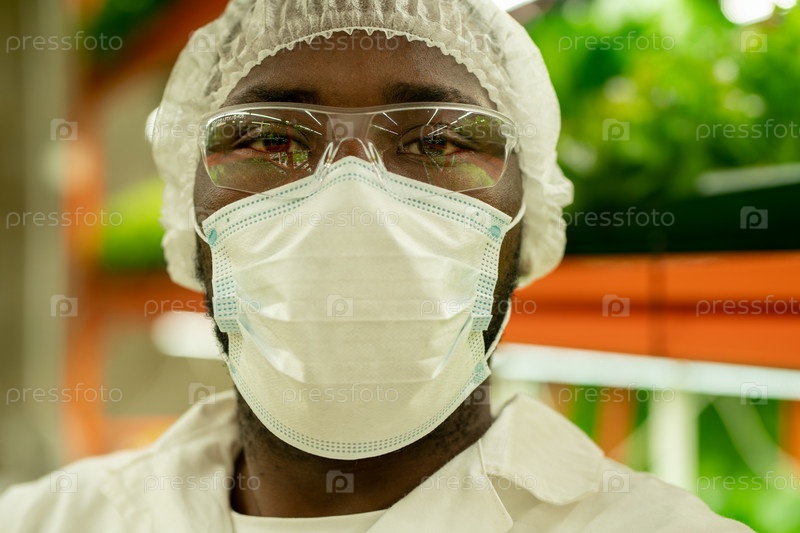 Портрет афроамериканского специалиста по культивированию в маске и шапке