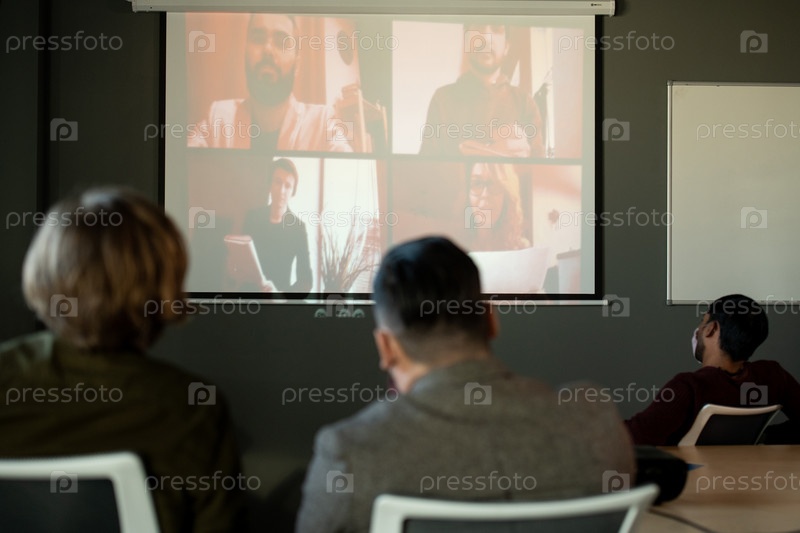 Несколько бизнесменов на доске, которые составляют отчеты или отвечают на вопросы