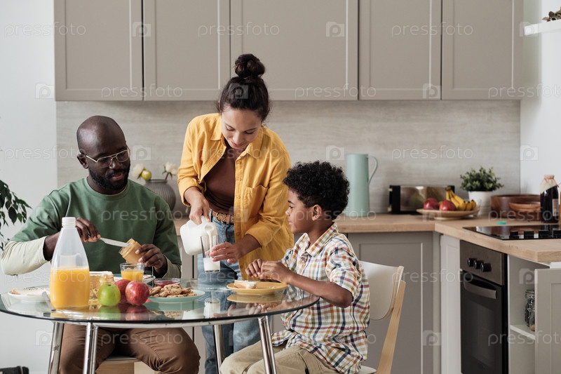 Семья завтракает на кухне