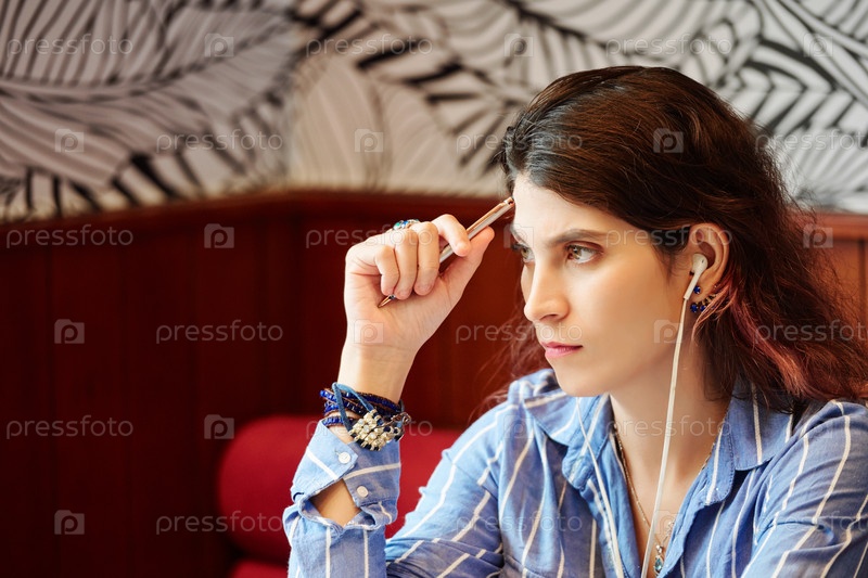 Серьезная мыслящая молодая женщина