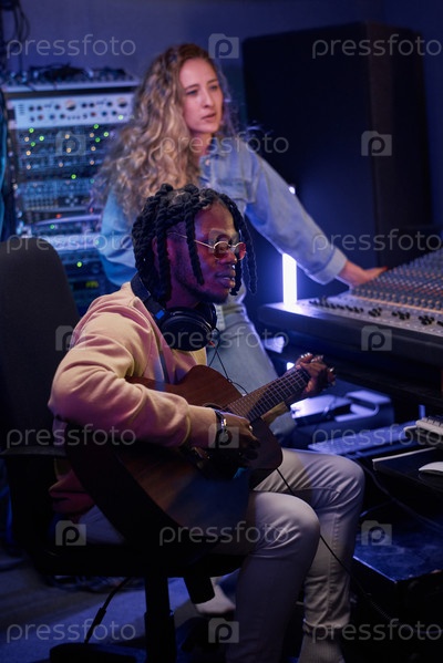 Люди пишут песни в студии