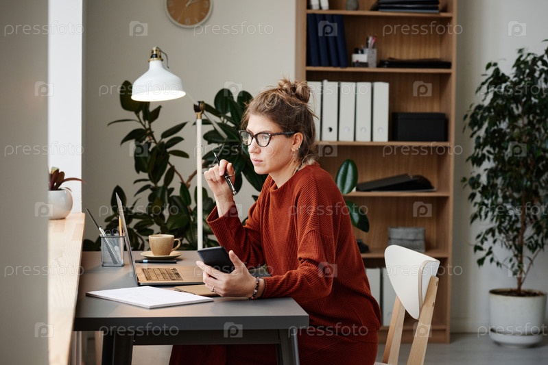 Женщина, работающая на своем рабочем месте в офисе