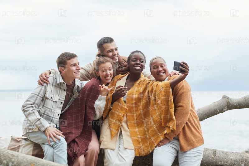 Группа друзей на озере