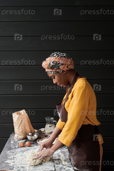Женщина измельчает тесто для хлеба