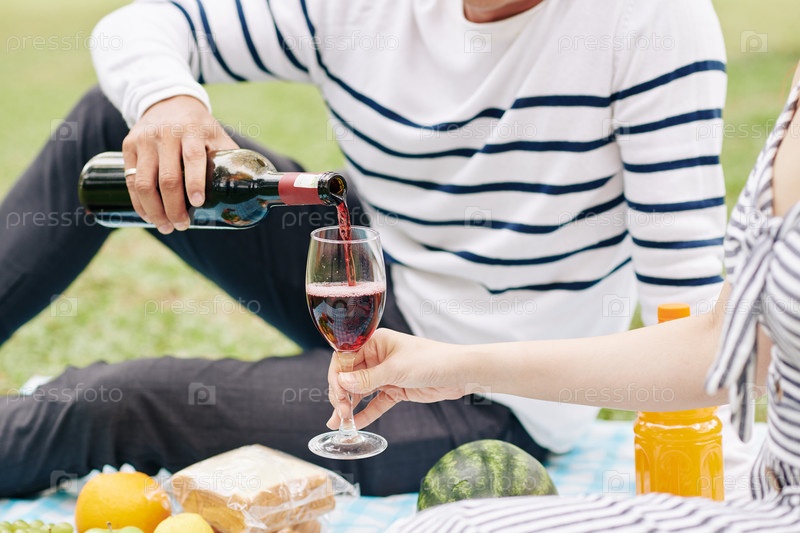 Мужчина наливает девушке вино