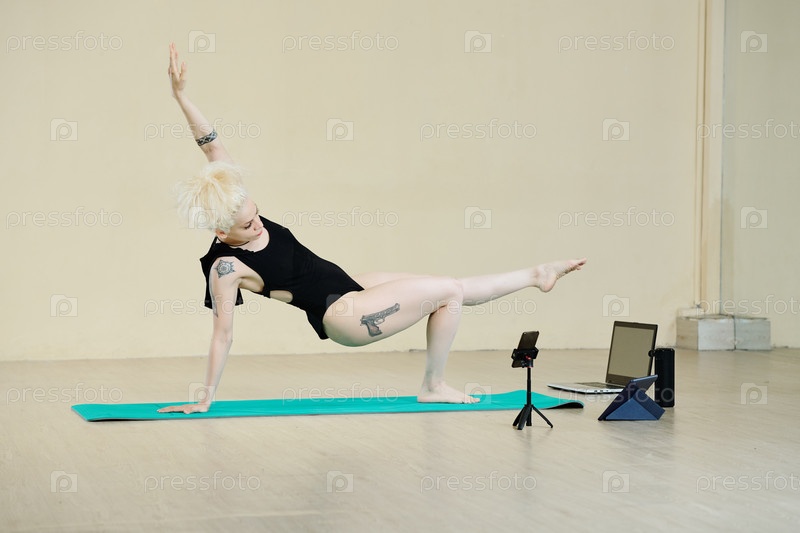 Женщина снимает тренировочное видео