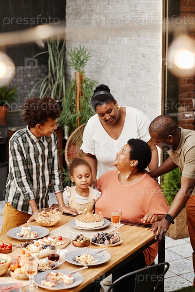 Бабушка празднует день рождения с семьей