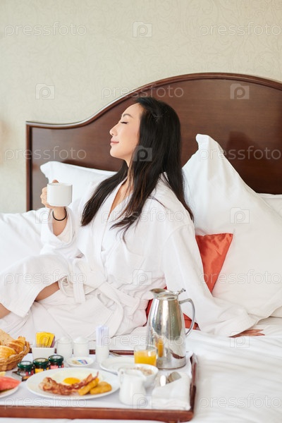 Женщина просто наслаждается завтраком в постели