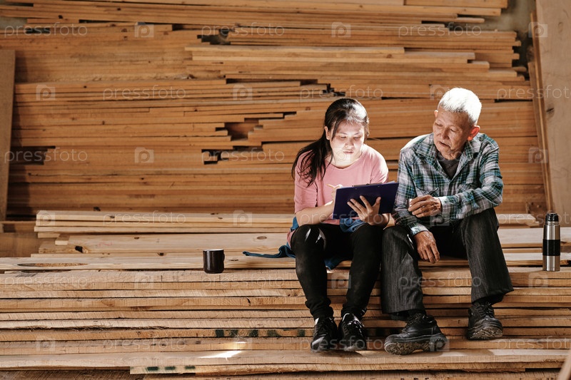 Дедушка и внучка работают над эскизом