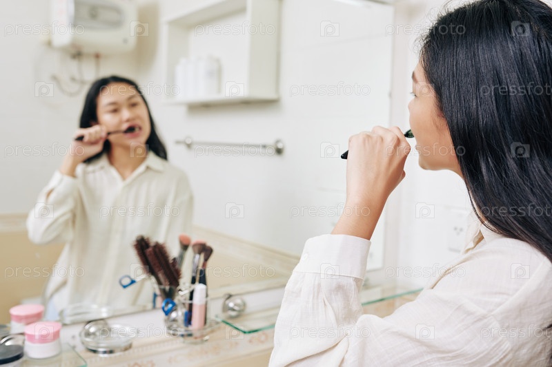 Женщина чистит зубы