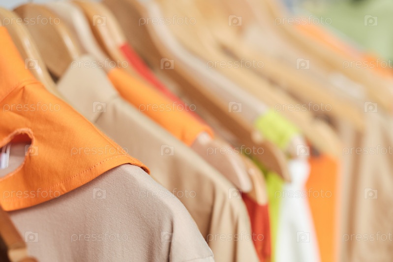 Новая одежда на полках в магазине