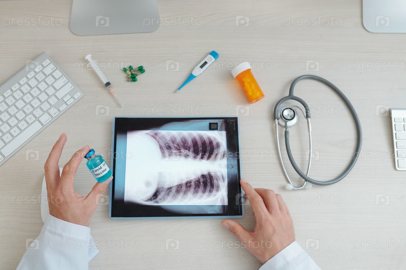 Врач общей практики держит флакон с вакциной