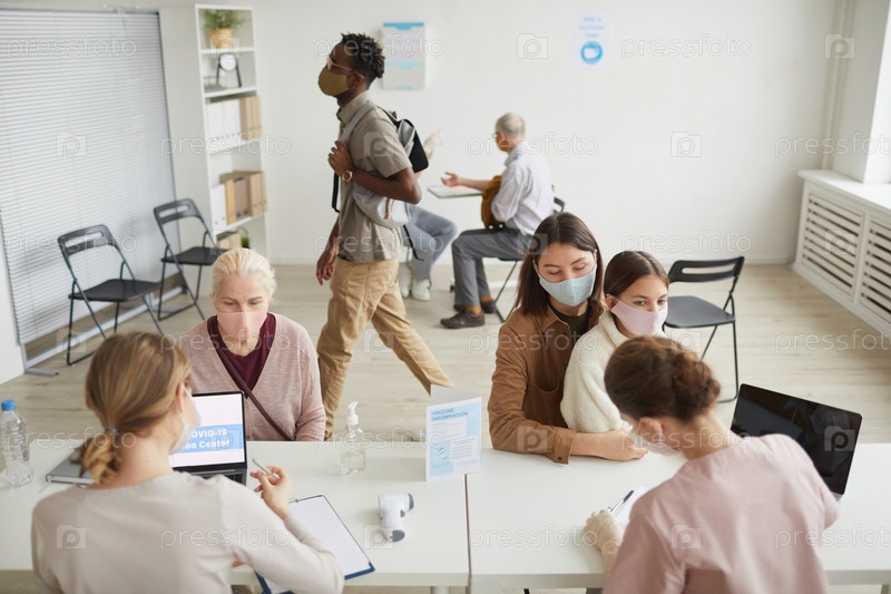 Люди в центре вакцинации широкого угла