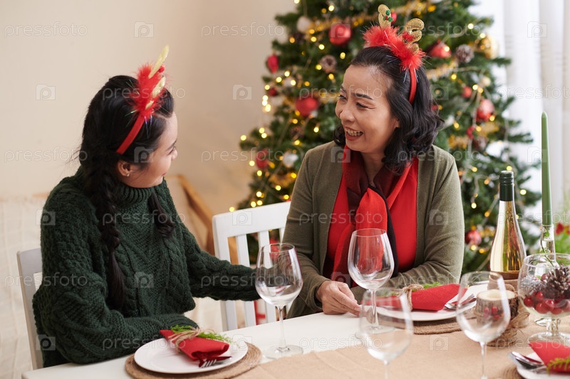Мать и дочь празднуют Рождество