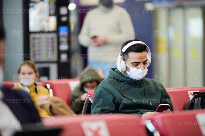 Мужчина сидит в комнате ожидания