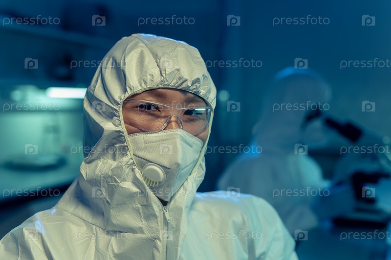 Химик в защитной рабочей одежде в лаборатории