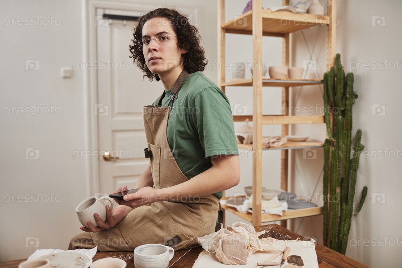 Портрет мужского художника в керамической мастерской
