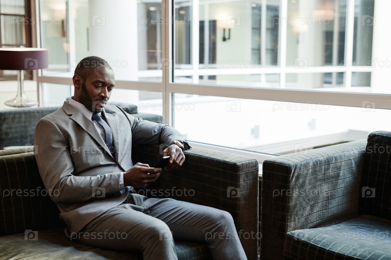 Афроамериканский бизнесмен отдыхает в гостиной