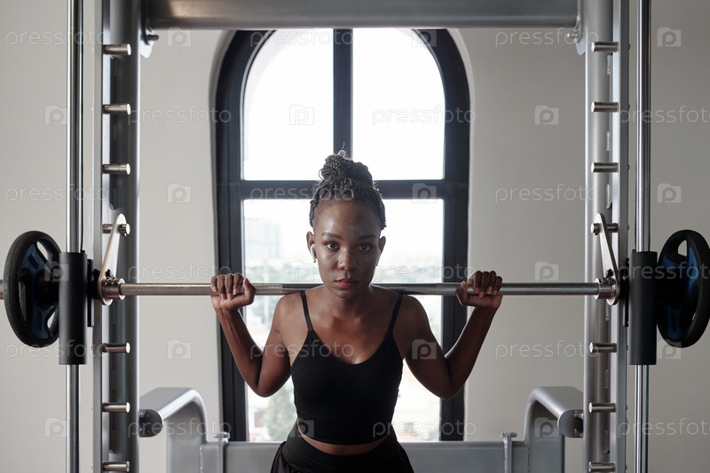 Спортсменка готовится поднять штангу