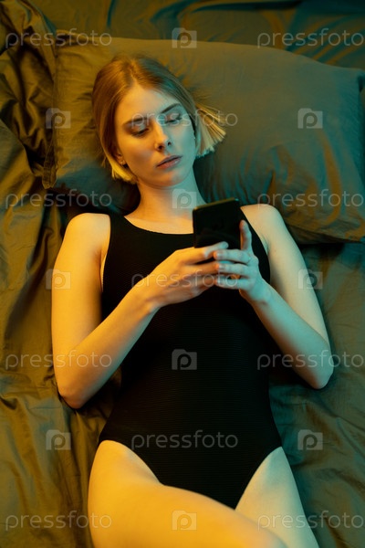 Женщина с телефоном на кровати