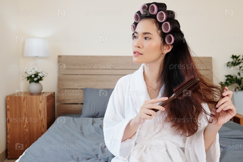 Женщина, наносящая ролики для волос