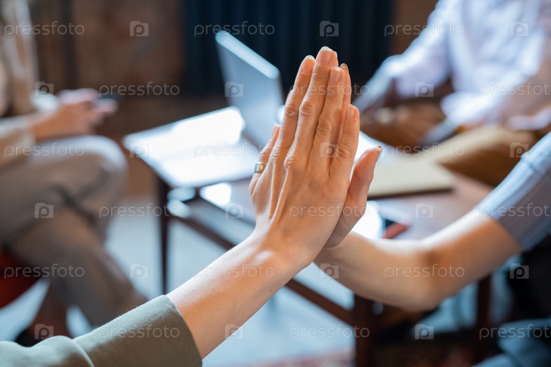 Две бизнес-женщины делают жест высокой пятерки