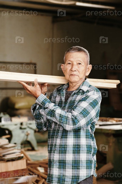 Плотник, несущий деревянные доски
