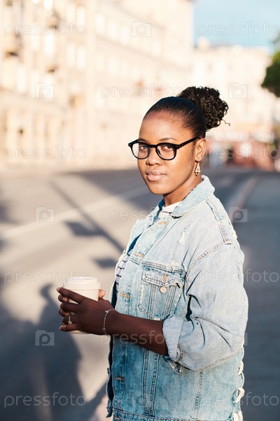 Черная женщина с кофе на вынос