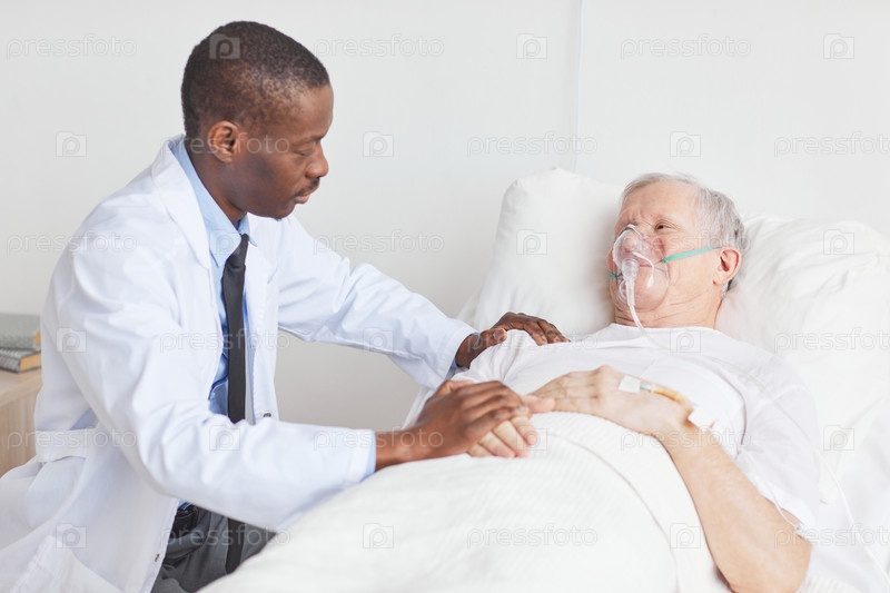 Доктор утешает пожилого человека в больнице