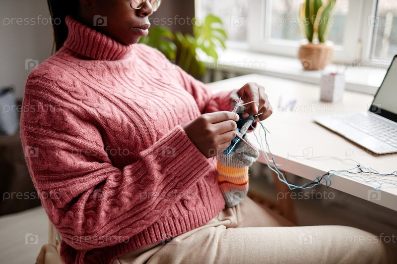 Молодая афроамериканская женщина вяжет носки