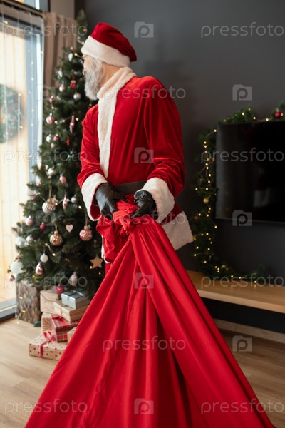 Санта несет рождественские подарки на елку
