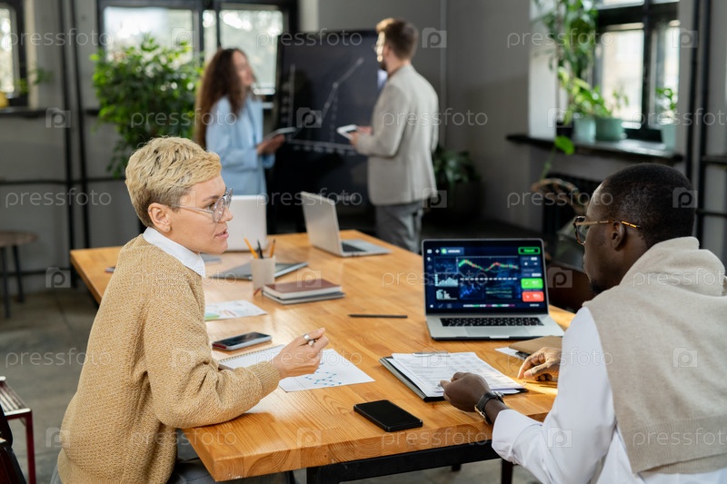 Два экономиста обсуждают финансовые данные на встрече