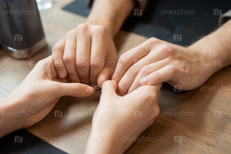Руки молодых ласковых свиданий, сидящих за столом во время романтического ужина