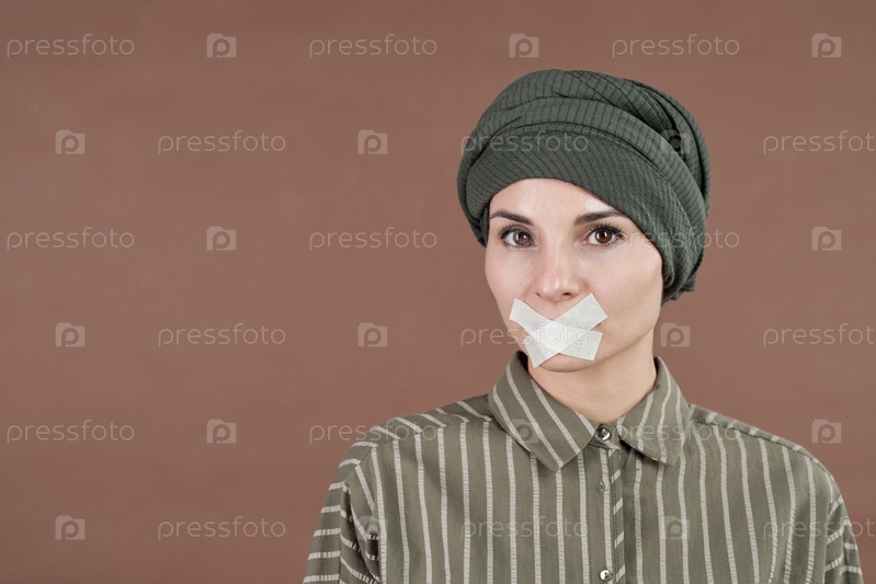 Женщина с лентой на рту