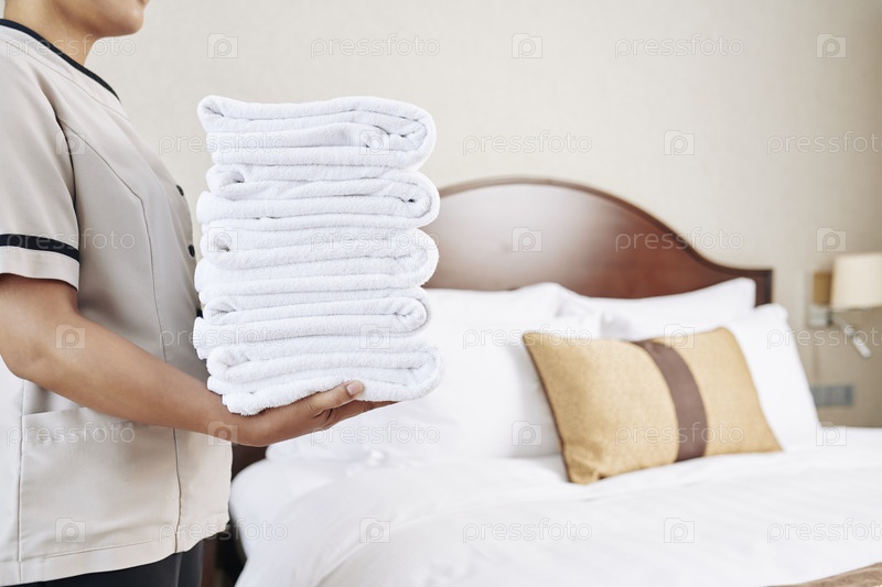 Служанка, несущая пушистые полотенца
