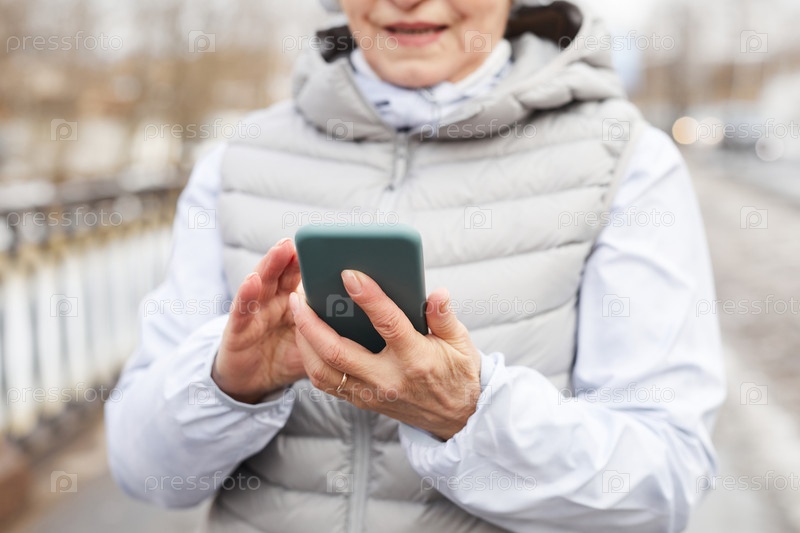 Зрелая женщина, держащая смартфон
