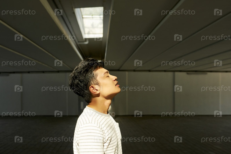 Молодой человек, выдыхающий