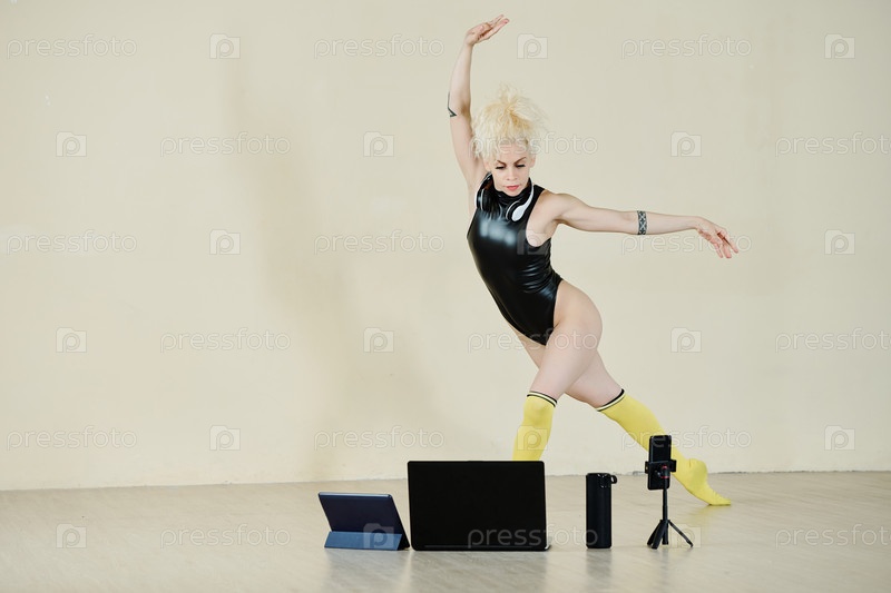 Женщина, снимающая себя танцующей
