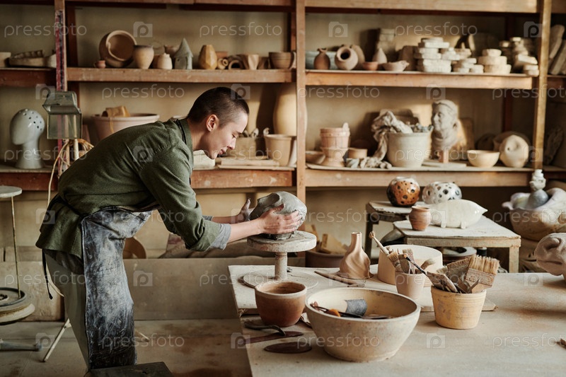 Скульптор, работающий в керамической студии