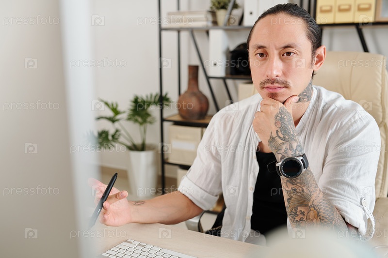 Концентрированный серьезный графический дизайнер