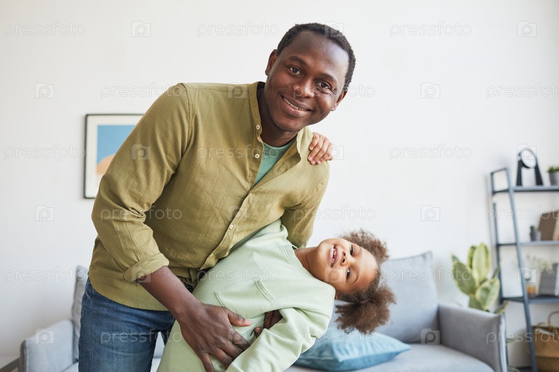 Счастливый афроамериканский папа играет с дочерью