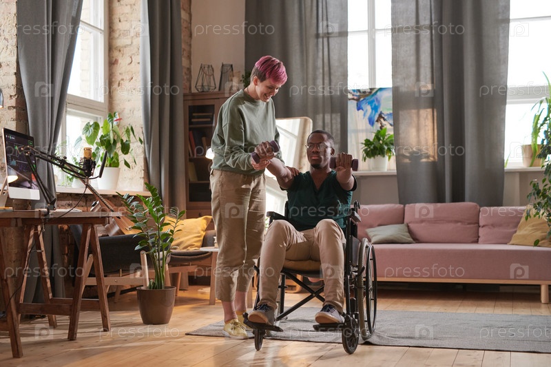 Инвалид делает упражнения